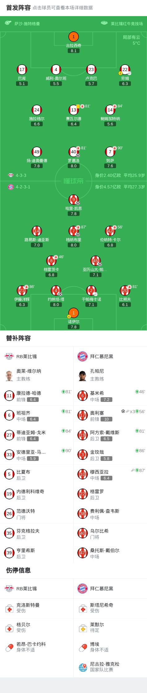 劍南春丨拜仁5-1萊比錫,奧利塞3傳1射,穆西亞拉傷愈送助攻